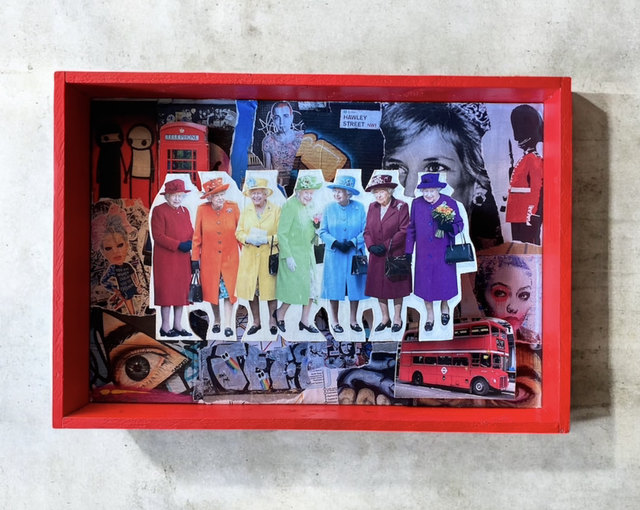 Un viaggio attraverso la cultura britannica, tra tradizione e ribellione. La regina, icona di stabilità, diventa un arcobaleno pop che attraversa il tempo, immersa in un collage di immagini che raccontano l’anima di Londra: dal punk all’arte di strada, dalla famiglia reale ai simboli più iconici della capitale.